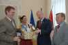 den hessischen Ministerpräsidenten Roland Koch in der Staatskanzlei, um den neuen Apfelwein des Streuobstkreises